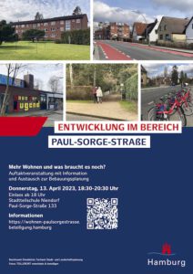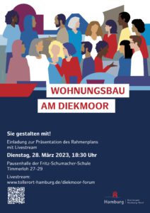 Die Ergebnisse der Rahmenplanung Horner Geest 2040 (Vandkunsten Architects) und des Mobilitätskonzepts (ARGUS Stadt und Verkehr) werden bis zum 5. April 2023 in einer Ausstellung im Stadtteiltreff i-Punkt Horner Geest im EKZ Manshardtstraße gezeigt. Zur „Midissage“ am 30. März 2023 laden Oberbaudirektor Franz-Josef Höing, Behörde für Stadtentwicklung und Wohnen, sowie Michael Mathe, Leiter Fachamt Stadt- und Landschaftsplanung im Bezirksamt Hamburg-Mitte, zusammen mit den Planungsteams ein. Alle Infos auf der Online-Plattform mit Feedback-Angebot!