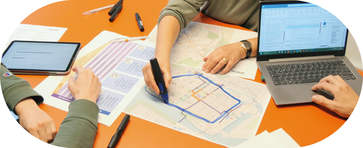 Wir schauen genau hin. Gemeinsam mit Ihnen klären wir die Zielstellung und sorgen dafür, dass alle wesentlichen Akteure mitwirken: Wir arbeiten kooperativ. Dazu gehört eine Erkundung des Untersuchungsgebiets mit Handicap. Wir erheben und bewerten die Barrierefreiheit und ermitteln daraufhin gemeinsam mit Ihnen als Auftraggeber:innen sowie Beteiligten den Handlungsbedarf sowie konkrete Vorschläge für Maßnahmen. So kann Barrierefreiheit gelingen.