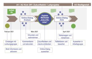 - Konzeption und Durchführung von zwei öffentlichen Veranstaltungen mit World-Café und Fishbowl