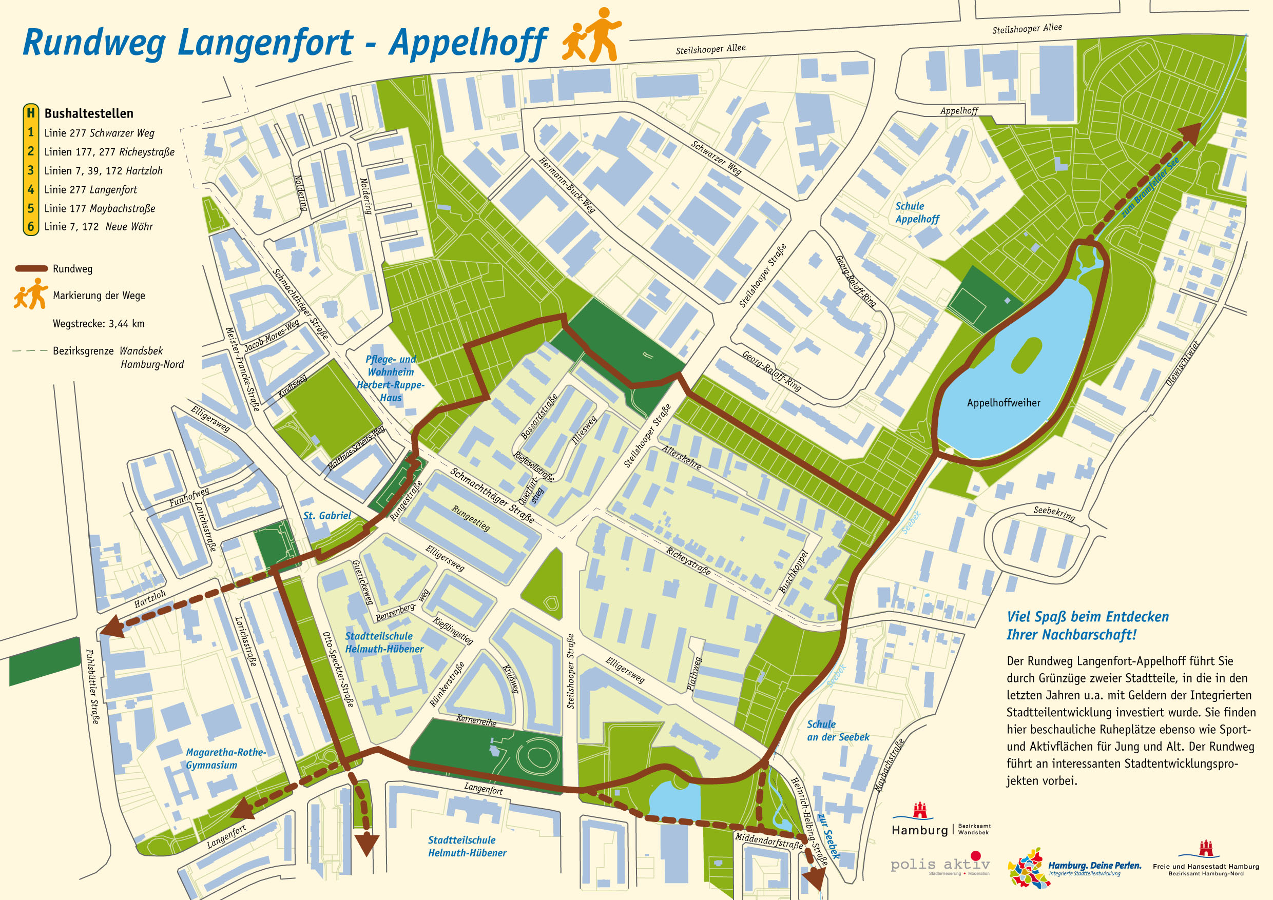 Das Landesfinanzierte Fördergebiet Langenfort/ Barmbek-Nord in der Nähe des ehemaligen Krankenhauses Barmbek wurde 2014 abgeschlossen. Sein Motto war „Räume schaffen für jung und alt“, dementsprechend standen Grünanlagen, Spielplätze, Barrierefreiheit von Wegen, aber auch die Verbesserung öffentlicher Einrichtungen im Vordergrund. Das Gebiet ist durch eine Reihe von Grünzügen geprägt, die das „öffentliche Wohnzimmer“ des Stadtteils bilden. Fast angrenzend an das Gebiet liegt das ehem. Fördergebiet „Appelhoff“ (Bezirk Wandsbek), in dem insbes. der Bereich um den Appelhoffweiher durch Erneuerungsmaßnahmen für unterschiedliche Zielgruppen attraktiv gestaltet wurde.